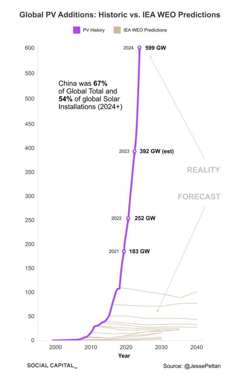 More money was invested in solar power in 2025 than in any other generation source, and more new solar capacity was installed than all other energy sources combined. China controls 80–97% of the solar supply chain, from polysilicon to modules.
